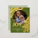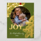 Contemporary classic Christmas holiday season greeting card with golden coloured pine tree needles wreath leaves pattern on a classy dark green background, with real gold foil JOY wish text. With option and room to customise the text, family name and year date, and add a personal photo of your choice on the front, and a customisable season greeting message on the backside of the card.