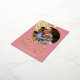 Contemporary classic Christmas holiday season greeting card with white coloured pine tree needles wreath leaves pattern on a classy blush pink background, with real golden foil Merry Christmas wish text. With option and room to customise the text, family name and year date, and add a personal photo of your choice on the front, and a customisable season greeting message on the backside of the card.