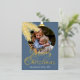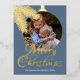 Contemporary classic Christmas holiday season greeting card with white coloured pine tree needles wreath leaves pattern on a classy grey blue background, with real golden foil Merry Christmas wish text. With option and room to customise the text, family name and year date, and add a personal photo of your choice on the front, and a customisable season greeting message on the backside of the card.