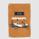 Custom Golf Clip-On Towel . Front has optional initials with golf cart design complete with a couple of beers. Matching tee pouch available. Design by Claudine Boerner.