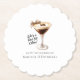 An espresso martini shows that the guest of honour is "a tini bit older." Sophisticated neutral colour palette. Martini with a bow and espresso beans.