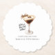 An espresso martini shows that the guest of honour is "a tini bit older." Sophisticated neutral colour palette. Martini with a bow and espresso beans.
