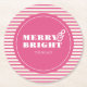 These custom coasters for drinks features the words "Merry & Bright" in white typography over a vibrant pink background. use the template fields to diy your personalised details. A cute choice for Christmas engagement parties or any winter themed party. To see more drink coasters visit www.zazzle.com/dotellabelle