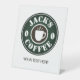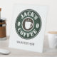 Custom coffee shop Pedestal Sign. Personalise with your own barista name, company slogan, tipping request or other text. Custom colours. Vintage coffee bean logo with hot cup silhouette. Great for business owner, shop, store, cafe, bar, event, festival, outdoor market, office, cafetaria etc. Serve your own unique lattes or espressos.