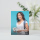 Personalisation is at the heart of this announcement. Customise it with your graduate's photo, name, class year, and school name, transforming the postcard into a unique and cherished keepsake. The front of the postcard showcases an elegant and modern script font, adding sophistication and style. Your graduate's photo is prominently displayed, capturing the essence of their hard work and achievements.