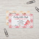 Cute little pink bird carrying and dropping sewing notions featuring a gingham background and your choice of background color on this business card for a sewist, or alterations seamstress.
