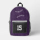 Choose your own colors! This softball themed backpack is accented with the image of a minimalist softball (only the stitches are represented in white) - the front pocket can be personalized with the athlete's name and jersey number - you can customize the colors of the backpack's components--access the Zazzle design tool by pressing the "Edit this design" button above to change the backpack component colors, currently purple, black and light gray - a digitally-created, texture-look graphic overlies the backpack's individual components for a distressed appearance, which can be removed if desired - by katz_d_zynes