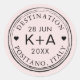 Personalise this retro airmail or passport stamp design favour label or envelope seal with names, wedding date and destination for some travel themed flair! Background and text colours can be changed to match your invitations and decor.