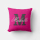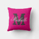 Custom colour background monogram throw pillow. Personalised monogrammed cushion for sofa, couch or bed in bedroom. Personalizable name and initial letter. In stylish neon pink or custom background colour. Elegant script typography text design. Classy vintage home decor. Trendy decorations and accessories.