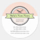 Change the background colour of this pretty bakery emblem with rolling pin and kitchen whisk on a decorative seal with text flag in pink and green for bakers or a home baking cottage biz. Comes on business cards, recipe binders and notebooks, 'from my kitchen' or 'from the kitchen of' stickers or food gift or product labels, name badges, recipe or marketing cards and more.