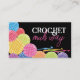 Change the background colour on this cute crochet business card or large gift tag or hang tag. Colourful balls of yarn with crochet hooks for crochet crafts biz or for your handmade wearables, toys, and gifts. CHANGE THE COLOR of the background in the customise section, then under edit, then background.