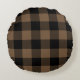 Custom Colour Black and Brown Buffalo Check Plaid Round Cushion