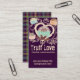 Change the background colour of this truffles, heart, and damask chocolate covered candy or confections business card or 'from my kitchen" gift tags for candy makers. Brown chocolate and white chocolate truffles in patterned candy cups. Change the background colour in the 'customise' section, then under 'edit', then 'background'. You can also remove the plaid image on the back and choose another background colour.