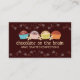 Colourful white chocolate and brown chocolate truffles in patterned candy cups with hearts background, business cards for candy making, chocolate and confections sellers. Also makes a neat 'from my kitchen' gift tag for your homemade food gifts or small market food packaging.