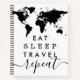 Pick your own colours and edit the wording and fonts to create your own inspirational quote journal notebook with "eat sleep travel repeat" saying. Pick a background colour, change the map colour, change the text colour to make it your own and inspire your wanderlust and travel goals every day. Visit our Designer Shop and Collection using the links below for matching items.
