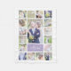 Photo collage blanket with 17 photos arranged in a grid layout featuring your family name in an elegant script. This versatile blanket design also has editable colours. You can change the background colour by clicking "customise", select "18BoxPhotoGrida" layer and change its colour from white to whatever you want and you can also change the colour of the rectangle behind your family's name by clicking "customise", select "rectangle" and change the fill colour. This blanket is perfect for wedding keepsake and anniversary gifts.