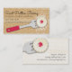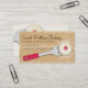 Cute cookie bakery business card with powdered sugar cookie filled with jelly on a spatula with lace background with custom-coloured background, perfect for home bakery, wedding cookies business or pastry chef and other sweet foods, desserts or culinary pros.