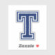 Letter T sticker. Sports college font, any custom colour. You can change the colour of the letter with the customisation tool. The complete alphabet and numbers 0-9 are available.