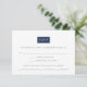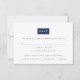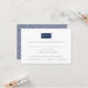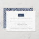 Sleek, chic and modern, these ultra modern wedding response cards feature "RSVP" set on a rectangular element that can be customised with the click of a button to match your wedding colours. Add your desired RSVP date, accept and decline wording, and meal or entree preferences in charcoal grey modern sans serif lettering, then adjust the colour to your preference using the easy instructions below. Cards reverse to an optional modern Greek key pattern. Shown in classic navy blue and white.