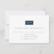 Sleek, chic and modern, these ultra modern wedding response cards feature "RSVP" set on a rectangular element that can be customised with the click of a button to match your wedding colours. Add your desired RSVP date, accept and decline wording, and a field for number attending in charcoal grey modern sans serif lettering, then adjust the colour to your preference using the easy instructions below. Cards reverse to an optional modern Greek key pattern. Shown in classic navy blue and white.