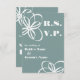 Modern wedding RSVP cards with customisable background colour.  White text and flower illustrations.  Look for matching invitations at Jill's Paperie.