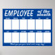 Hang this beautiful and elegant full-year Employee of the Month poster on any handy bulletin board and stick your staff photos each month, this one features a classic white word design and choose the background colour that best suits the your company, the perfect complement to your team's recognition, motivation and incentive programs.