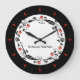 Change the background colour of this kitchen clock to go with your decor - retro style vegetables in a circle around a clock with red notches for hours. Change or remove the text.