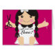 Pick your own background colour on this cute seamstress toy doll sewing crafts greeting card or gift card. Doll in black and white with rosy cheeks, button eyes, and stitching on her dress and hair bow. She holds a needle and thread on the right side, scissors on the left. You can resize or move the image to get the look you want.