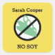 Custom Colour Soy Allergy Alert Personalised Kids Stickers. Change background colour from bright yellow to bold red or white or other colour. Edit to add child's name or other identifying information. Large green and white no soy symbol with soybeans crossed out with black line in the centre of sticker. Text reads NO SOY. Great for putting on safe snacks, school supplies, lunches, or other items for your child. Alert others to a soy allergy, raise food allergy awareness. Designs by Lil Allergy Advocates www.lilallergyadvocates.com