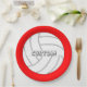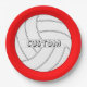 Custom Colour & Text Volleyball Paper Party Plates: Totally customisable paper plates for volleyball parties and special events. Personalise them by typing any text in the custom text box, and then click the [Customise] button and use the colour picker tool to select your favourite background colour (currently set on red). It's the perfect table decoration for volleyball player parties, team banquets, or other celebrations!