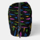An eighties inspired retro pattern with colourful neon 80's lightning illustrations on a black background. Perfect backpack design for anyone who loves nostalgic 80's look designs, colourful shape illustrations and vintage neon patterns.