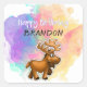 This is a super cute colourful sticker for a birthday! It has a cute moose cartoon character and can be customised and personalised!