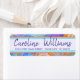 Chic simple address return label with an aqua turquoise, red, lime green, violet purple, blue and orange abstract swirls background pattern design. And classic and modern script font to embellish your mail and envelopes with. Customise or personalise with the names and address of your choice.
