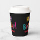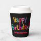 Custom Colourful Retro Happy Birthday - Black Paper Cups