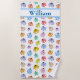 An Adorable Kids Colourful Robot Beach Towel You Can Custom With Their Name.