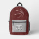 Choose your own colours! This basketball themed backpack is accented with the image of a minimalist basketball (only the seams are represented in white) - the front pocket can be personalised with the athlete's name and jersey number - you can customise the backpack's colours--access the Zazzle design tool by pressing the "Edit this design" button above to change the backpack component colours, currently maroon and light grey - a digitally-created, texture-look graphic overlies the backpack's individual components for a distressed appearance, which can be removed if desired - by katz_d_zynes