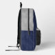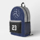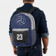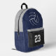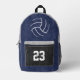 Choose your own colours! This volleyball themed backpack is accented with the image of a minimalist volleyball (only the seams are represented in white) - the front pocket can be personalised with the athlete's name and jersey number - you can customise the backpack's colours--access the Zazzle design tool by pressing the "Edit this design" button above to change the backpack component colours, currently blue, black and light grey - a digitally-created, texture-look graphic overlies the backpack's individual components for a distressed appearance, which can be removed if desired - by katz_d_zynes
