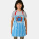 Cool and fun colourful bright blue, red, yellow and white coloured comic book pop art theme inspired motif on a cute white and blue vertical stripes pattern design. With room to customise or personalise with name, monogram, initials, or (limited) text of your choice. Modern and artsy style for the trend savvy and whimsy art loving hip trendsetter, vintage retro look or abstract motif lover. Unique, pretty, decorative, fashionable and trendy birthday or Christmas gift for your loved ones, kids, friends or other family members who love to cook or tinker around in the kitchen.