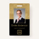 Easily personalise this custom gold employee name and photo badge with your own company logo and qr code or bar code. Available with different background colours and attachments. No minimum order quantity.