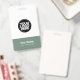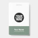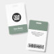 Easily personalise this Custom Administrative professional Name Badge without photo, with Scan Bar Code and large business logo. A simple business design in organic sage green and white colours fully customisable in front and back sizes, sans-serif basic and modern fonts and a professional and clear look, perfect for small business employee, boss, guests. These business id badges supplies are avaiable with lanyard, metal clip or with retractable. No minimum order, but save money and enjoy Zazzle discounts by multiple orders!