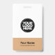 Easily personalise this Custom Administrative professional Name Badge without photo, with Scan Bar Code and large business logo. A simple business design in camel beige and white colours fully customisable in front and back sizes, sans-serif basic and modern fonts and a professional and clear look, perfect for small business employee, boss, guests. These business id badges supplies are avaiable with lanyard, metal clip or with retractable. No minimum order, but save money and enjoy Zazzle discounts by multiple orders!