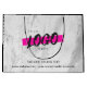 The design has a logo and custom texts such as website , tagline , social media etc on the front and it has business logo pattern design on the back side of the bag. The bag has a black and white marble theme with the sides in black colour and the front and back in white marble.