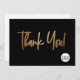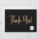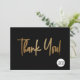 Personalise this simple and easy-to-use thank you flat card template with your company's logo, website, message, business name, website and social media handle (delete any icons not applicable using the 'customise further' button). Let your clients, customers, patrons know you are grateful for their support, personalise the thank you message as needed. Simple, chic, modern typography in faux gold print on black.