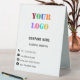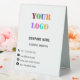Custom Font and Colours Table Tent Sign with Your Company Logo Promotional Business Personalised Text - Name Info Professional Design Customisable Table Signs / Gift - Add Your Business Name - Company / Business Sector - Industry / Phone / E-mail / Website / Facebook - Contact Information - Choose / Add Your Favourite Background and Text / Font / Colours / Size - Resize and move or remove and add elements / text with Customisation tool. You can also transfer design to more than 1000 Zazzle products. Good Luck - Be Happy :)
