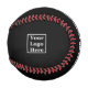 There are two spots for adding your company's logo. You can add replace the display text (Add Your Company Name) with your custom message or business name. The text is white on a black baseball. There are no minimums for this branded promotional product.