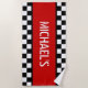 Custom Cool Black White Chequered Flag On Red Beach Towel
