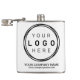 Custom black and white branded flask featuring your professional corporate business logo design with your company name and website, customised. Is your LOGO another colour? No Problem! Change the font colour in the design tool.
