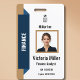 Professional and customisable corporate employee ID badge in navy light brown. Add your company logo, employee photo, name, title, department, ID number, and QR code. Designed for business, office, and corporate staff, this modern template is ideal for businesses, teachers, administrative assistants, and media personnel. A simple and professional identification solution for company security needs.