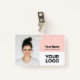 Easily personalise this Custom Employee Name Badge with Photo, Scan Bar Code and business company logo, featuring persons name, occupation, optional identity bar code, with metal clip included. A branded badge useful to identify staff, visitors or guests. A simple business design with large photo in cute feminine blush pink and white fully customisable in front and back sizes, in any colour background, sans-serif basic and modern fonts and a professional and clear look. An useful tool for corporate events, reunions, renews and celebrations. Create more corporate photo badge identification card in different colours for any category you need to identify: staff, visitors or guests. Avaiable with or without lanyard, metal clip or with retractable. No minimum order.
