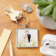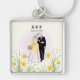 A beautiful square keychain featuring a romantic silhouette of a bride and groom in a field of daffodils, personalised with initials "A&S" and your special date "September 30, 2023". Soft pastel pink gradient background adds elegance and warmth. The perfect anniversary, wedding, or engagement gift to celebrate eternal love. Customise with your initials and date! High-quality metal frame with clear acrylic print | Durable chain | Lightweight and meaningful